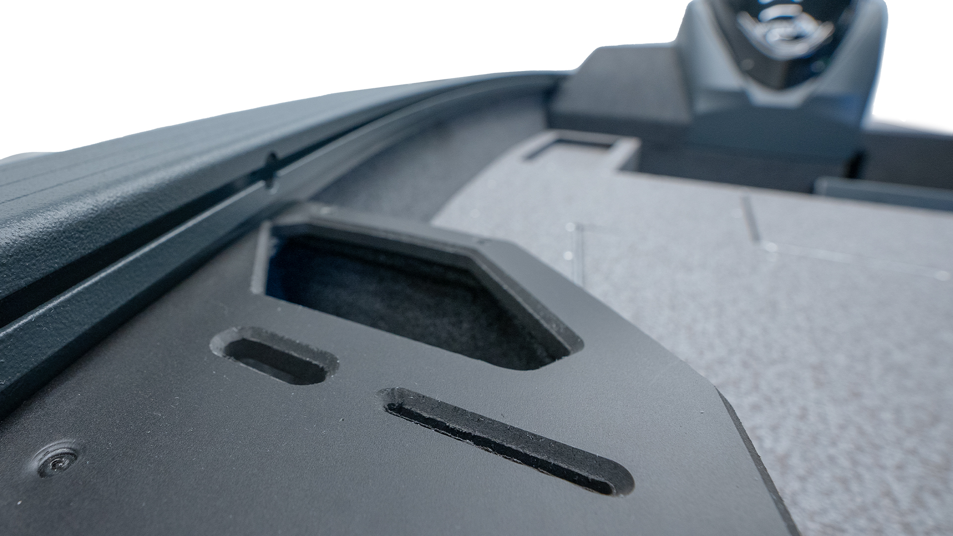 OUTER SIDES COVERED WITH A HYDROPHOBIC WRAP: BASIC COLOR: ORACAL 970-905; RAPTOR® WEAR-RESISTANT AND ANTI-SLIP COATING ON RECESS, TRANSOM AND GUNWALE: BASIC COLOR: BLACK