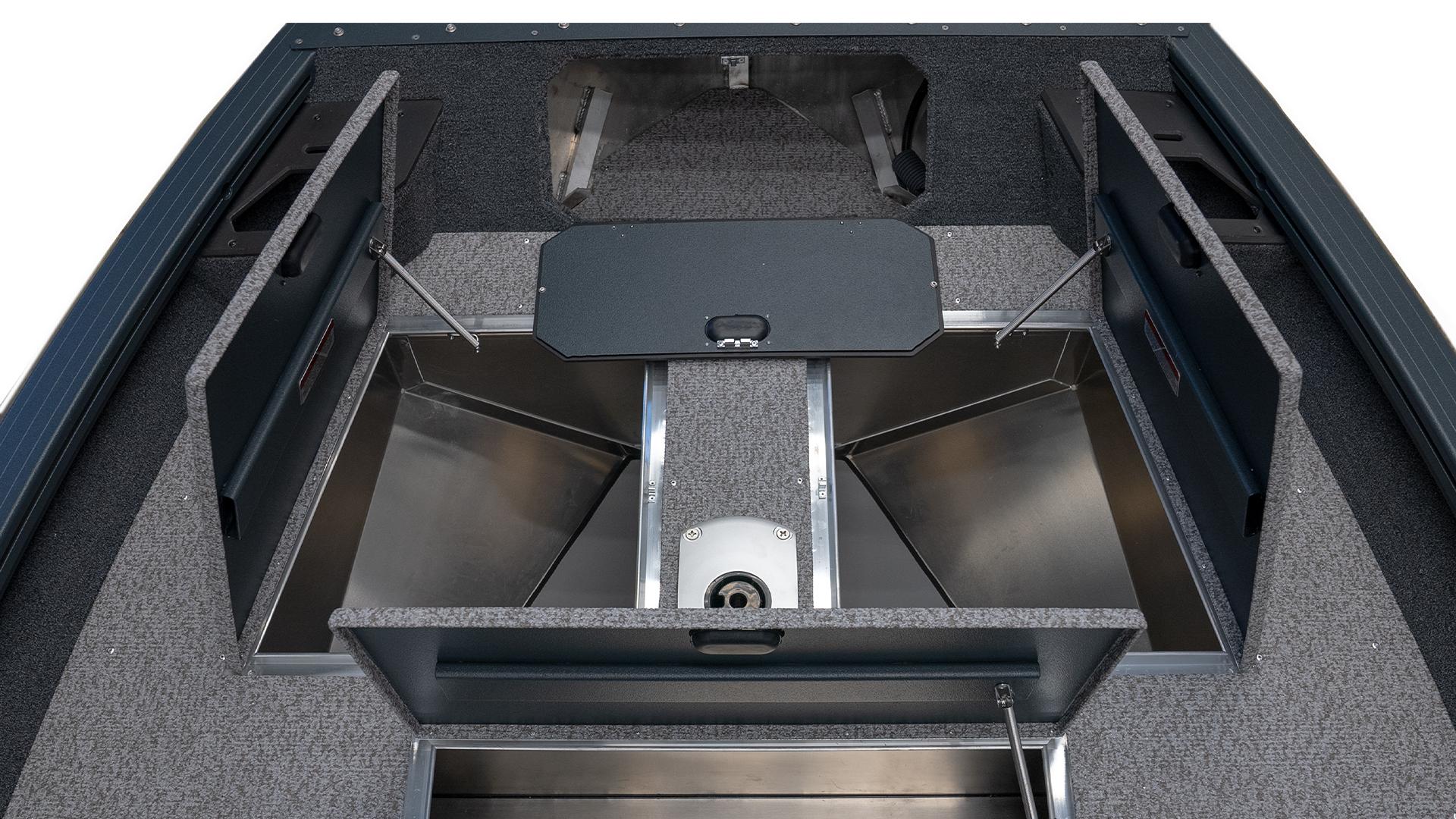 ILLUMINATED 63 LITER LIVEWELL WITH AUTO FILLING IN THE BOW DECK. CAN BE USED AS A DRY LOCKER FOR THINGS.