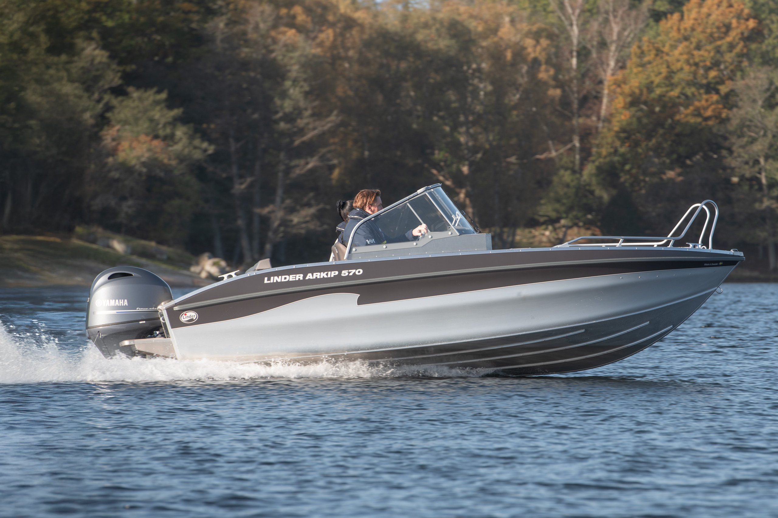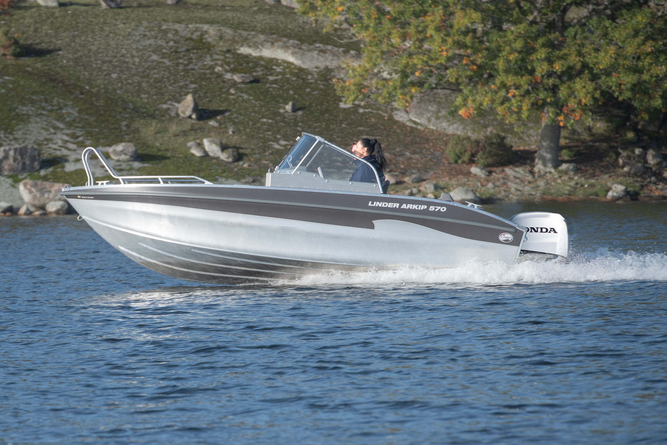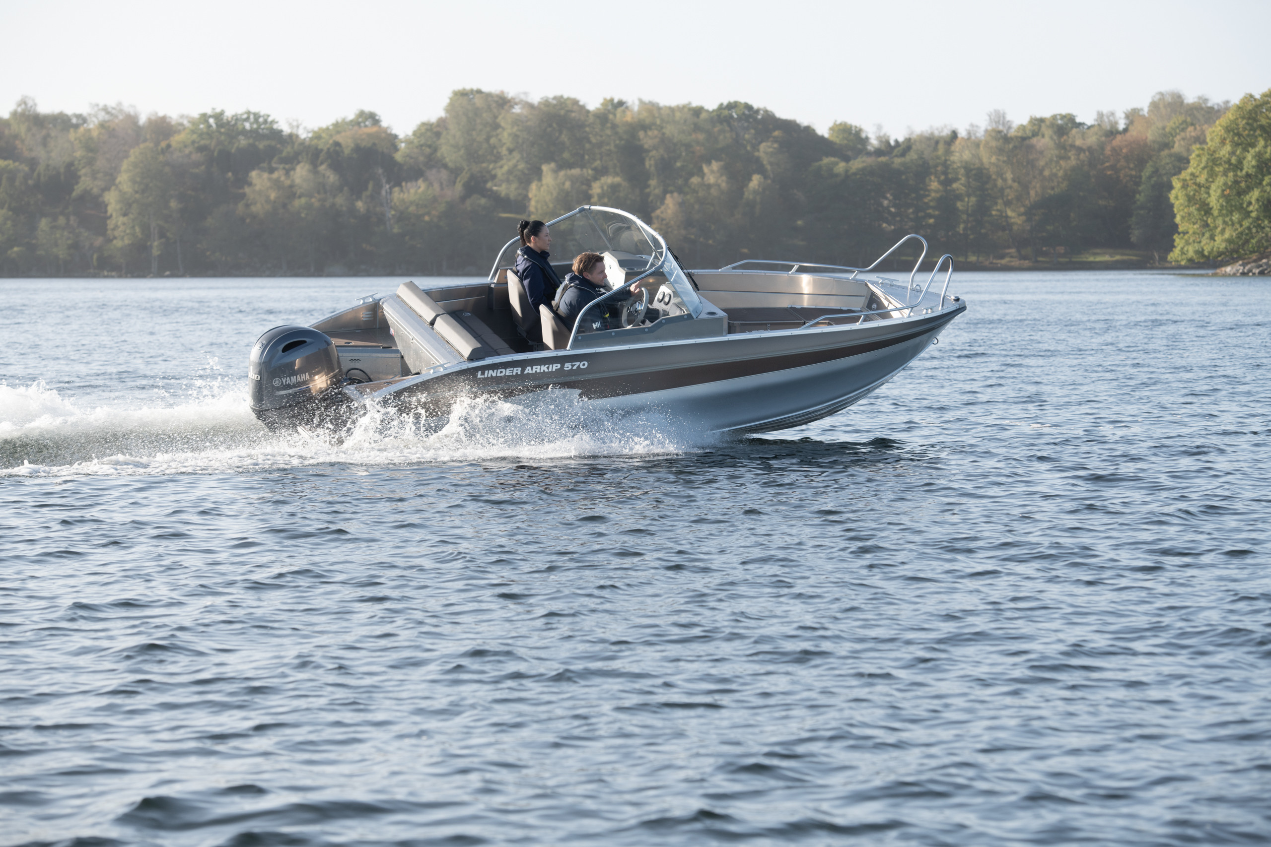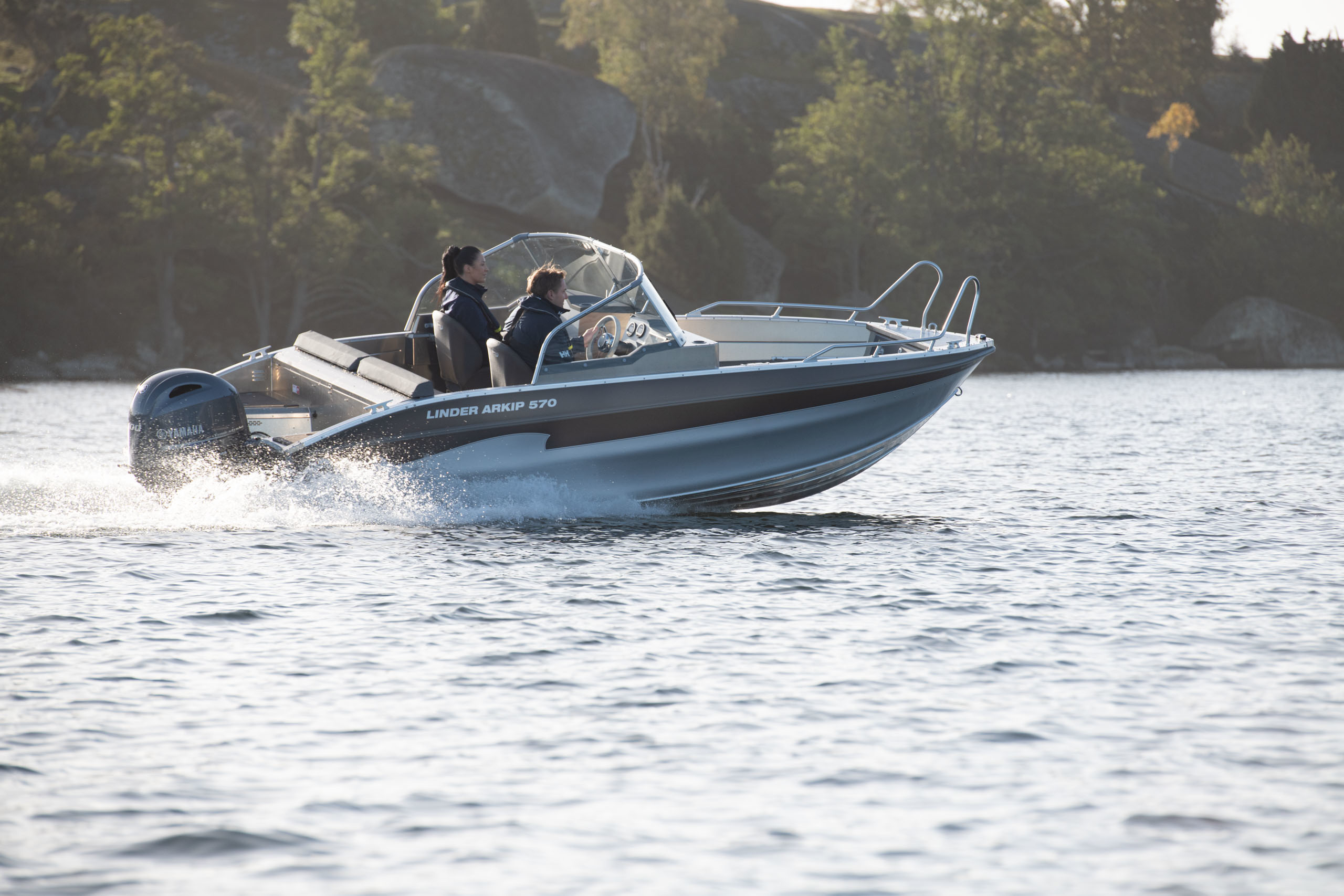 Die Neuheit Arkip 570 – ein Aluminiumboot für 6 Personen mit Doppelrumpf. Neue Steuerkonsole mit integrierter Tür, echten Windschutzscheiben und Scheibenwischern. Ein Rumpfwinkel von 16° verleiht dem Boot eine niedrige Gleitgrenze, die von seiner Geschwindigkeit zeugt. Höhere Badeplattform mit teleskopischer Badeleiter. Sowohl Fahrer als auch Passagiere sitzen bequem in stoßgedämpften Sitzen. Der Sitzbereich wurde vergrößert. Der Platz zwischen den Sitzen und dem Heck ist größer geworden. Auftrieb in den Rumpfseiten, Selbstlenkung und natürlich ein 2,7 mm starker Aluminiumrumpf. Das ARKIP 570 ist bereits ab Werk gut ausgestattet, unter anderem mit Doppelsteuerstand und integrierter Tür, Hydrauliksteuerung, gasgefederten Sitzen, Selbstlenz, automatischer Lenzpumpe, einem festen Kraftstofftank mit 67 Litern Fassungsvermögen, Heckpersenning, Garmin-GPS mit Echolot, C-tek, Steuerstandabdeckung und Badeplattformen mit Badeleiter. Platz für 10-Zoll-GPS. 3 Jahre Garantie.